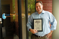 Amy Otto, Co-Chairperson of Dunwoody Business Expo 2011, said “I was thrilled with the results of the Best of Dunwoody Awards. There were a bunch of nominations for the Rising Star Award and Jay Kapp really stood out. His community involvement is amazing and the testimonials from his clients who nominated him were touching and heartfelt.”