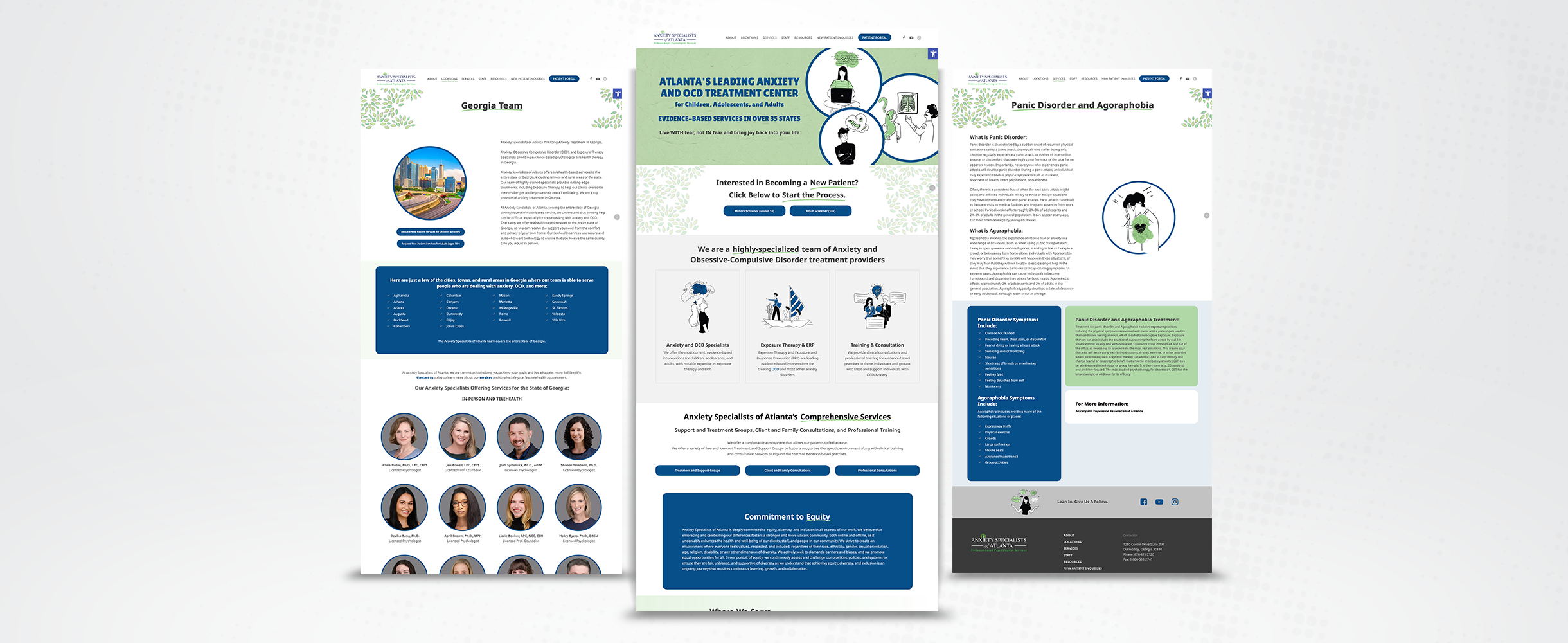 Atlanta’s leading Anxiety and OCD treatment center, Anxiety Specialists of Atlanta, came to us seeking an Atlanta-based company that can provide the creative vision for an appealing website redesign and the technical knowledge to build and maintain it. When the owner found us online and reached out, we were more than thrilled to partner with a forward-thinking organization that provides an important service to our great state and many others.