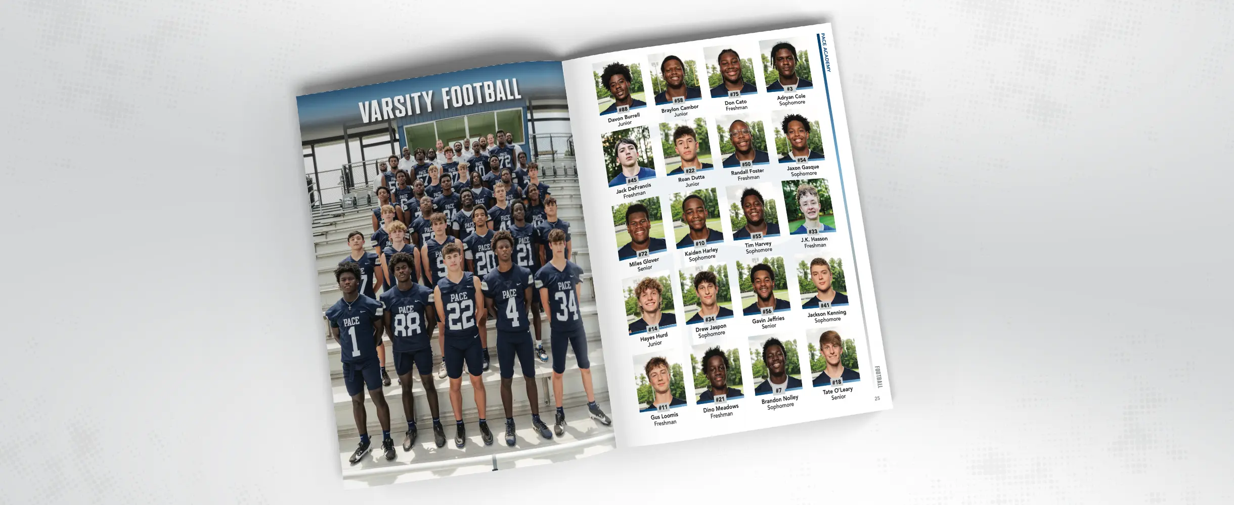 Once the photographers provide the images to us we turn on the magic. We build a new sports program book from scratch to Pace’s exact requirements and timeline. And we combine all of the images with the other essentials, such as rosters, advertisements and schedules, to make a truly magnificent sports program which will be a special keepsake for years to come. Jay Kapp, who played baseball at rival St. Pius X Catholic High School, still goes down memory lane with old sports programs from his day and likes to reminisce about the “glory days.”